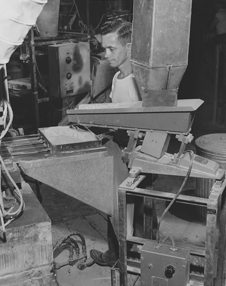 ![]() 15. Tiles are inspected and placed in proper location to be automatically moved through the kiln. |